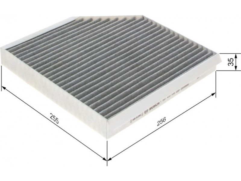 Criteries : Έκδοση εξαιρετ. απόδοσης με ενεργό άνθρακα (αρ. προϊόντος) 0986628659, Μήκος [mm] 254, Παραλλαγή φίλτρου φίλτρο ενεργού άνθρακα, Πλάτος [mm] 258, Ποσότητα 1, Υψος [mm] 35