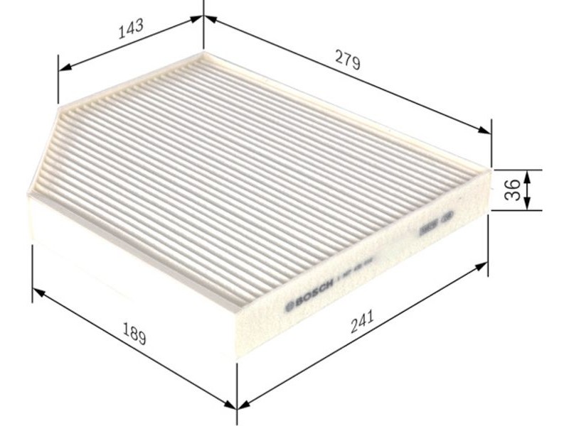 Criteries : Έκδοση εξαιρετ. απόδοσης με ενεργό άνθρακα (αρ. προϊόντος) 0986628622, Έκδοση με ενεργό άνθρακα (αρ. προϊόντος) 1987432369, Μήκος [mm] 240,5, Παραλλαγή φίλτρου Φίλτρο σωματιδίων, Πλάτος [mm] 278,5, Ποσότητα 1, Υψος [mm] 36