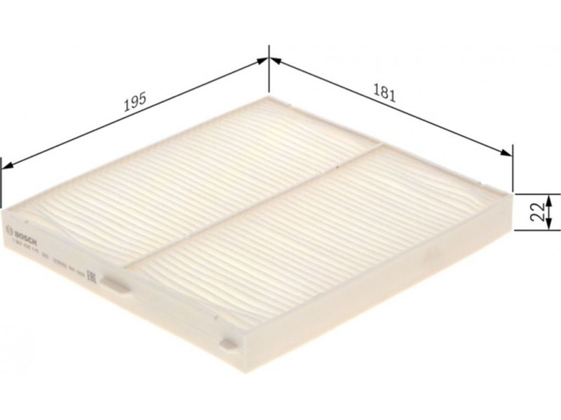 Criteries : Μήκος [mm] 200, Παραλλαγή φίλτρου Φίλτρο σωματιδίων, Πλάτος [mm] 181, Ποσότητα 1, Υψος [mm] 22
