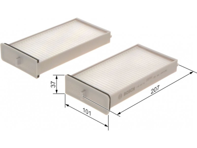 Criteries : Μήκος [mm] 206,5, Παραλλαγή φίλτρου Φίλτρο σωματιδίων, Πλάτος [mm] 100,9, Ποσότητα 2, Υψος [mm] 36,7