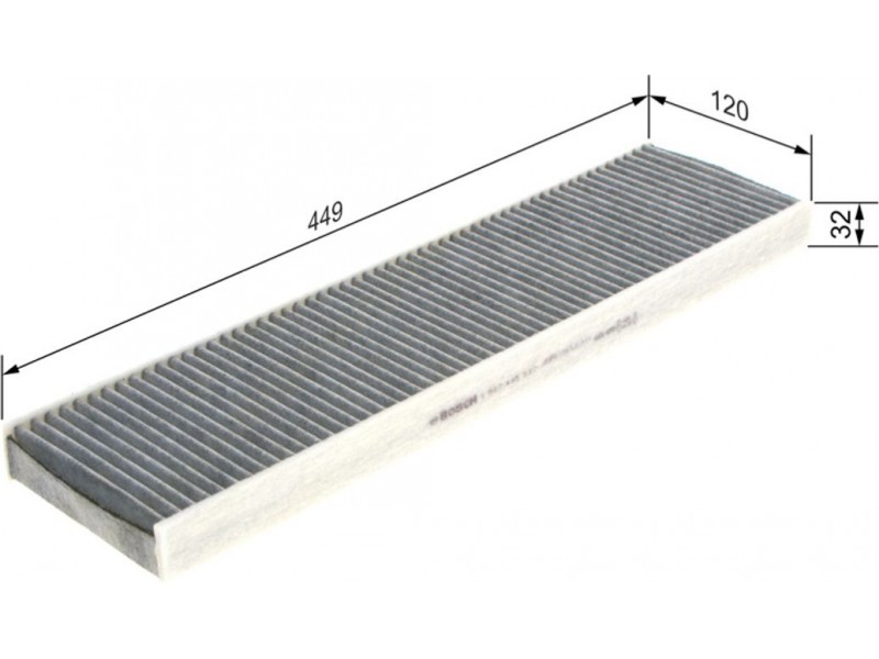 Criteries : Βασική έκδοση (αρ. προϊόντος) 1987432296, Έκδοση εξαιρετ. απόδοσης με ενεργό άνθρακα (αρ. προϊόντος) 0986628579, Μήκος [mm] 449, Παραλλαγή φίλτρου φίλτρο ενεργού άνθρακα, Πλάτος [mm] 120, Ποσότητα 1, Υψος [mm] 32