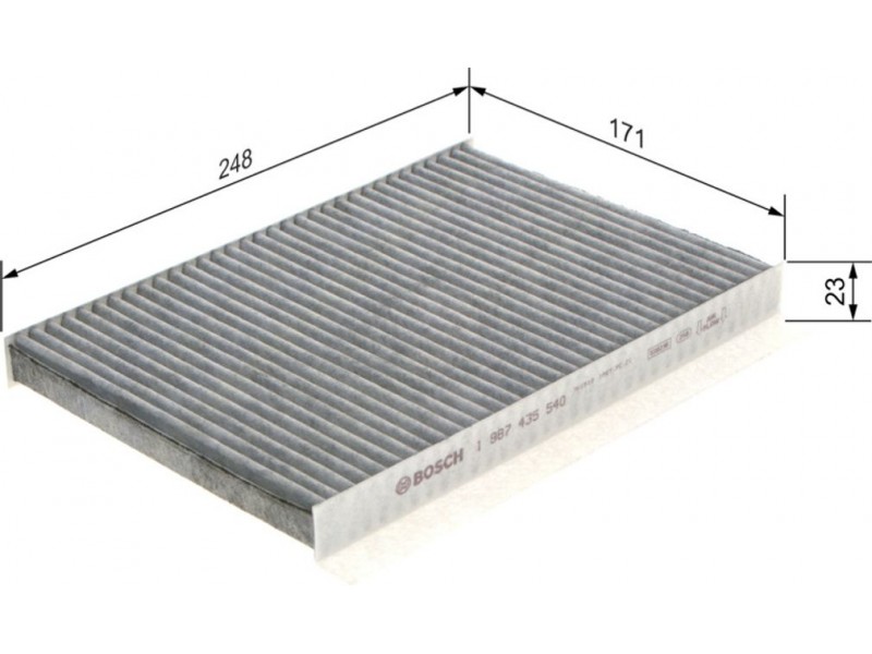Criteries : Βασική έκδοση (αρ. προϊόντος) 1987432055, Μήκος [mm] 248, Παραλλαγή φίλτρου φίλτρο ενεργού άνθρακα, Πλάτος [mm] 171, Ποσότητα 1, Υψος [mm] 23