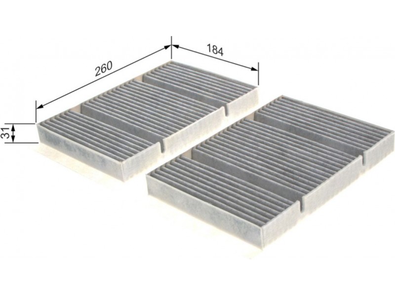 Criteries : Μήκος [mm] 184, Παραλλαγή φίλτρου φίλτρο ενεργού άνθρακα, Πλάτος [mm] 260, Ποσότητα 2, Υψος [mm] 30,5