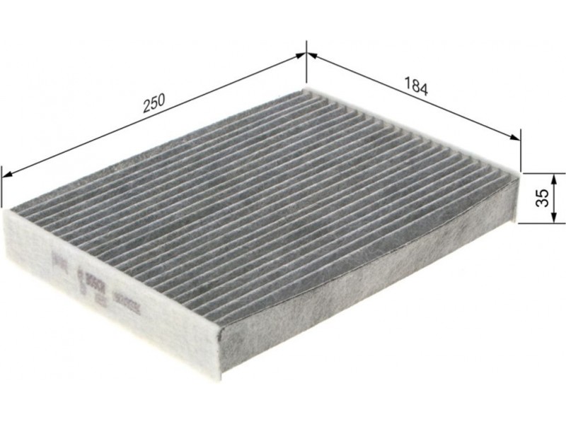 Criteries : Βασική έκδοση (αρ. προϊόντος) 1987435010, Έκδοση εξαιρετ. απόδοσης με ενεργό άνθρακα (αρ. προϊόντος) 0986628589, Μήκος [mm] 184, Μονάδα ποσότητας Τεμάχιο, Παραλλαγή φίλτρου φίλτρο ενεργού άνθρακα, Πλάτος [mm] 250, Ποσότητα 1, Υψος [mm] 35