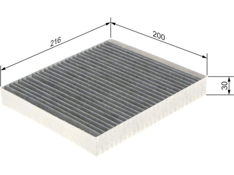 Criteries : Βασική έκδοση (αρ. προϊόντος) 1987435517, Μήκος [mm] 216, Παραλλαγή φίλτρου φίλτρο ενεργού άνθρακα, Πλάτος [mm] 200, Ποσότητα 1, Υψος [mm] 30