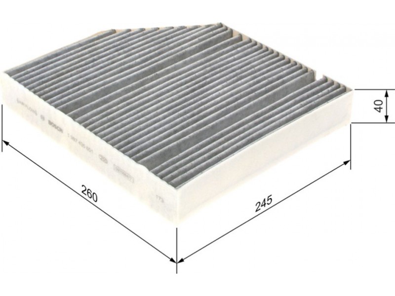 Criteries : Έκδοση εξαιρετ. απόδοσης με ενεργό άνθρακα (αρ. προϊόντος) 0986628567, Μήκος [mm] 260, Παραλλαγή φίλτρου φίλτρο ενεργού άνθρακα, Πλάτος [mm] 245, Ποσότητα 1, Υψος [mm] 40
