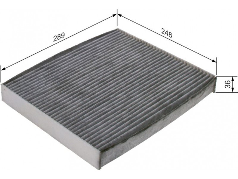 Criteries : Βασική έκδοση (αρ. προϊόντος) 1987435165, Έκδοση εξαιρετ. απόδοσης με ενεργό άνθρακα (αρ. προϊόντος) 0986628593, Μήκος [mm] 247,5, Παραλλαγή φίλτρου φίλτρο ενεργού άνθρακα, Πλάτος [mm] 289, Ποσότητα 1, Υψος [mm] 36