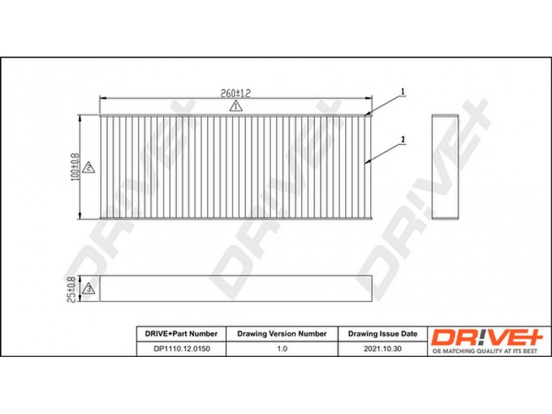 Criteries : Μήκος [mm] 260, Παραλλαγή φίλτρου Φίλτρο σωματιδίων, Πλάτος [mm] 100, Υψος [mm] 25