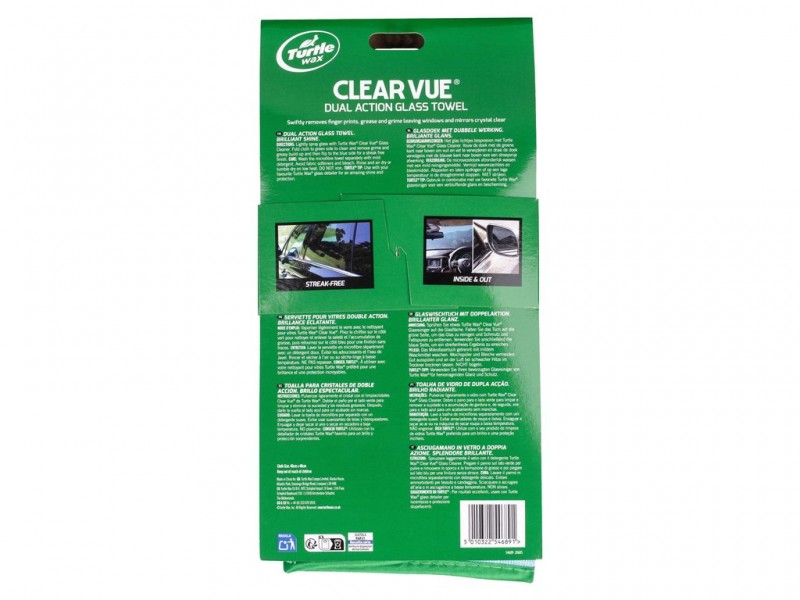 Διατηρήστε τα τζαμια σας πεντακάθαρα με την πετσέτα Turtle Wax Clear Vue® Dual Action - ο εύκολος τρόπος για να αφαιρέσετε δακτυλικά αποτυπώματα, λεκέδες και βρωμιά για ένα κρυστάλλινο φινίρισμα. Η λεία μπλε πλευρά ανασηκώνει και παγιδεύει δακτυλικά αποτυπώματα, λεκέδες και επίμονη μεμβράνη παραθύρων, ενώ η απαλή πράσινη πλευρά από μικροΐνες γυαλίζει και γυαλίζει το γυαλί για μια λάμψη χωρίς ραβδώσεις. Ανθεκτική και επαναχρησιμοποιήσιμη, καθαρίζεται εύκολα και είναι έτοιμη για επαναλαμβανόμενη χρήση. Κρατήστε την στο ντουλαπάκι του συνοδηγού σας για να διατηρείτε εύκολα τους κρυστάλλινους καθρέφτες και τα παράθυρα οποιαδήποτε στιγμή. Σχεδιασμός διπλής όψης για γρήγορο και αποτελεσματικό καθαρισμό γυαλιών Η λεία μικροΐνα ανασηκώνει και παγιδεύει τη βρωμιά για ένα διαφανές φινίρισμα Μέγεθος υφάσματος: 35cm x 40cm