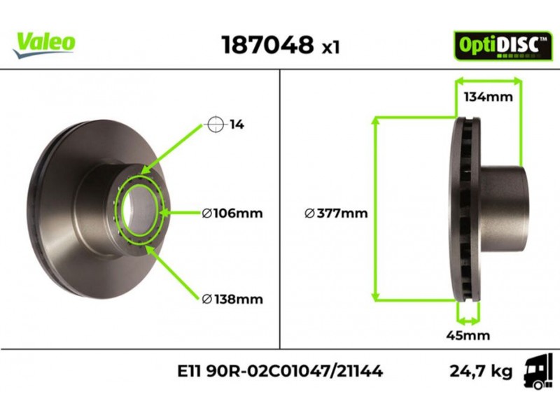 Criteries : Βάρος [kg] 25,19, Διάμετρος κέντρωσης [mm] 168, Ελάχιστο πάχος [mm] 37, Εξωτερική διάμετρος [mm] 377, Ζάντα, αριθμός οπών 14, Πάχος δισκόπλακας [mm] 44,9, Πλευρά τοποθέτησης μπροστινός άξονας, Τύπος δισκόφρενων αεριζόμενο, Υψος [mm] 134
