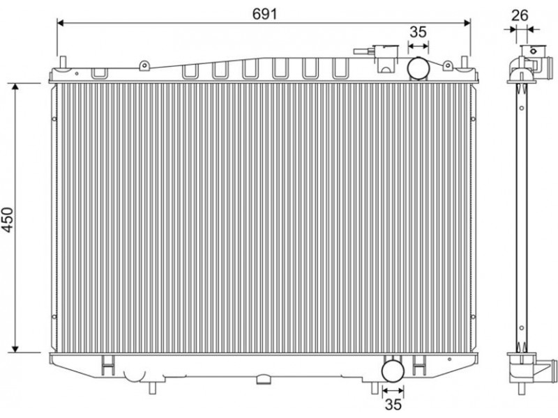 Criteries : Βάθος διχτυού [mm] 26, Βάρος [kg] 5,57, Διάμετρος εισόδου [mm] 35, Διάμετρος εξόδου [mm] 35, Θέρμανση/ψύξη για οχήματα χωρίς ψυγείο λαδιού, Μήκος διχτυού [mm] 450, Πλάτος διχτυού [mm] 688, Τύπος περιβλήματος Πλαστικό περίβλημα, Υλικό Αλουμίνιο