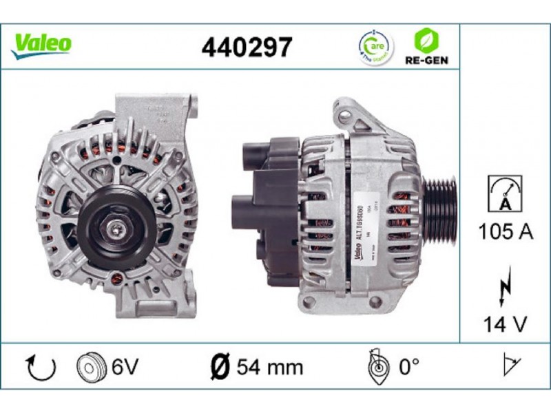 Criteries : Αριθμός ραβδώσεων 6, Βάρος [kg] 5,25, Διάμ. τροχαλίας ιμάντα [mm] 54, Επαφή B+ / L, επαφή χωρίς σύνδεση για στροφόμετρο, Θέση/βαθμοί R 0, Παλαιό εξάρτημα , Ρεύμα φόρτισης γεννήτριας [A] 105, Τάση [V] 14, Τρόπος στερέωσης Άμεση στερέωση, Τροχαλίες ιμάντων με δίσκο ιμάντα, Τροχαλίες ιμάντων με τροχαλία ιμάντα με ραβδώσεις, Φορά περιστροφής Φορά περιστροφής προς τα δεξιά