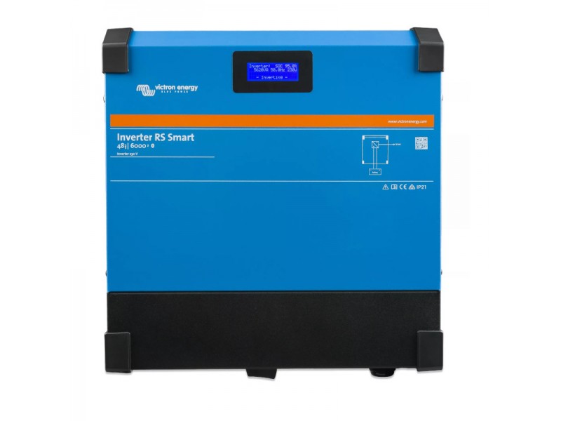 Ο Victron Inverter 48/6000 μετατρέπει την τάση 48V DC σε καθαρό ημιτονοειδές ρεύμα 230V AC, αποδίδοντας ισχύ 6000VA με εξαιρετική απόδοση και σταθερότητα, κατάλληλη για βαριές εφαρμογές.